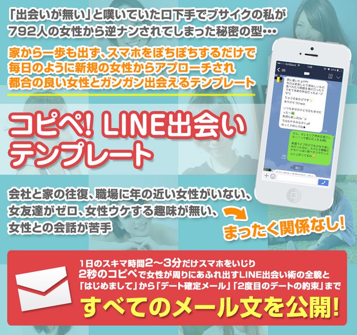 要するに、今回の「コピペ!LINE出会いテンプレート」では、暇な時にスマホをいじるだけで、毎日のように新たな女性と出会うことが可能になります。