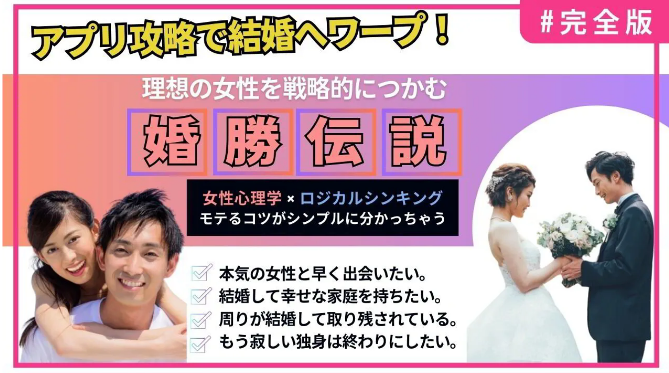 「婚勝伝説」は、このような方たちでも、本教材は、効果的に婚活を成功へと導きます。