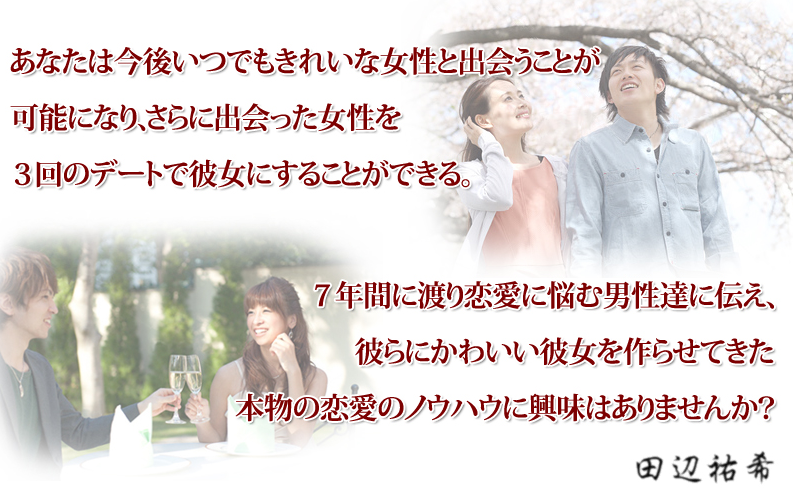 短期間のうちに外見・内面ともに美しい女性と出会う方法と、あなたが今、好意を抱いている女性を彼女にする方法を提供しています。