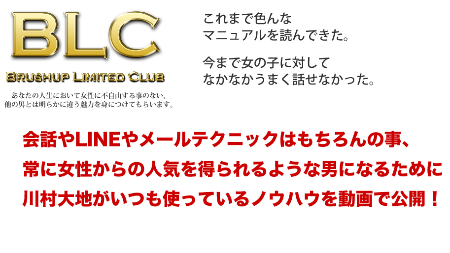 「BLC〜ブラッシュアップ・リミテッド・クラブ〜」では、恋愛で上手く成果を上げるために独自の恋愛テクニックをマスターしてもらいます。